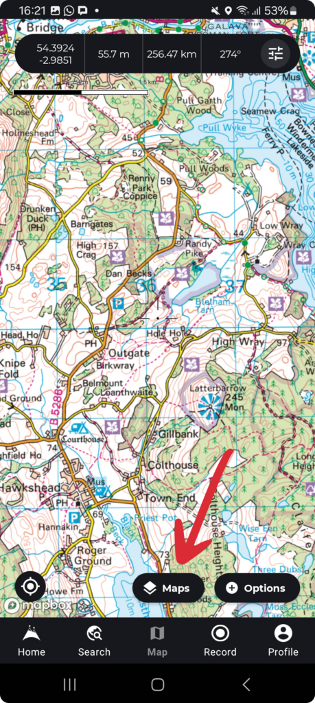 On any map on HiiKER you can activate POIs from the “Maps” button. Tap the “Maps” button and then tap on the “POIs” tab for a full list of available categories.