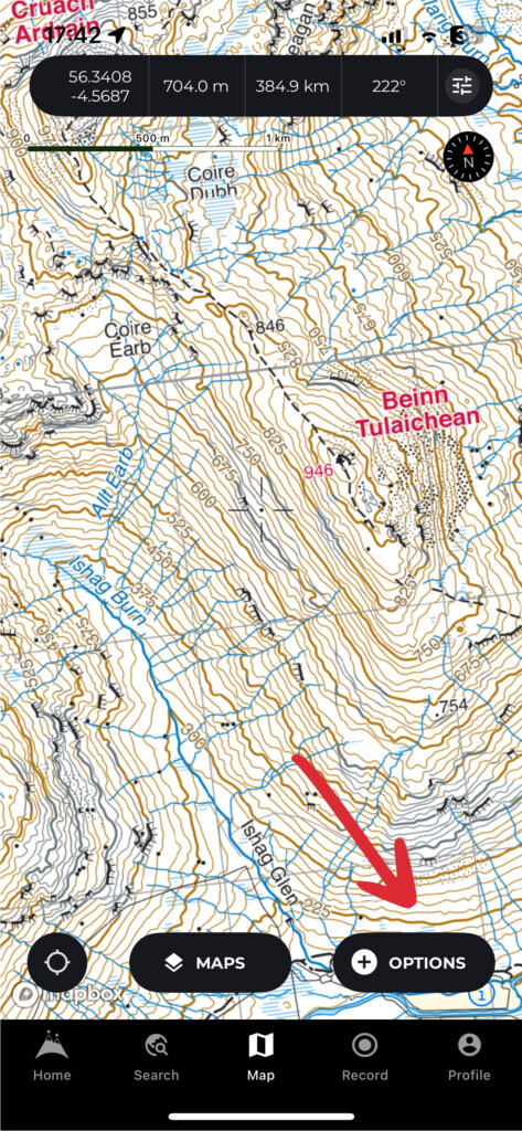 Open any map screen in the HiiKER app and tap the “options” button