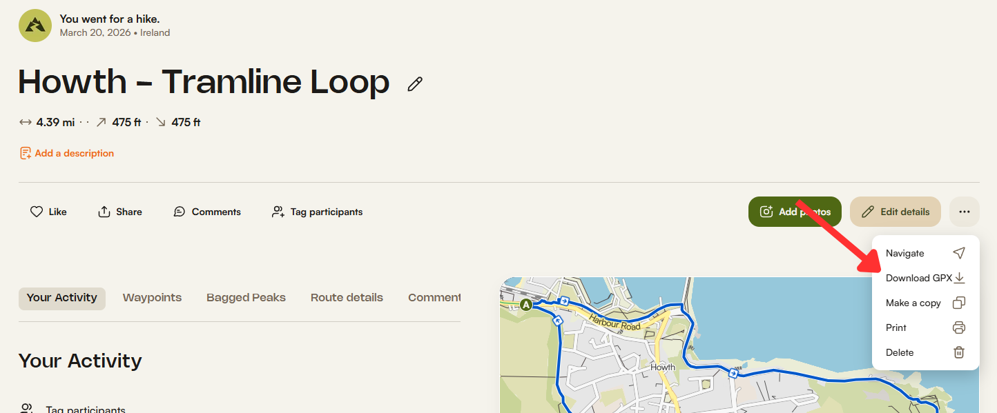Click the “Download GPX file” option